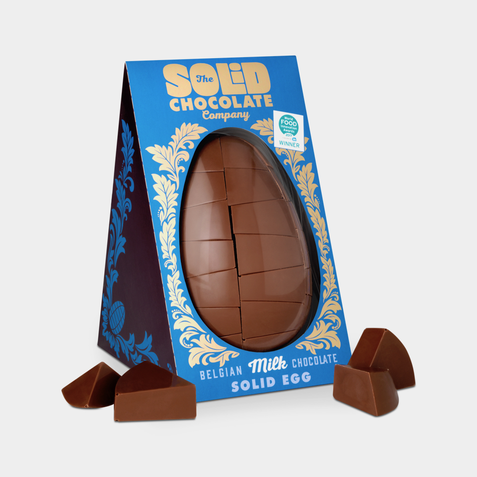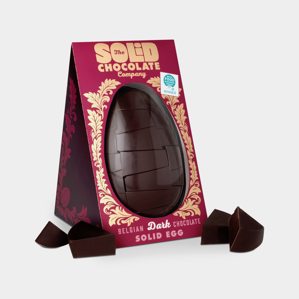 A one-of-a-kind product necessitates one-of-a-kind packaging. The Solid Chocolate Eggs are an example of this. Their eggs are truly solid… all the way through. Each one contains 750 grammes of Belgian chocolate of the highest quality.